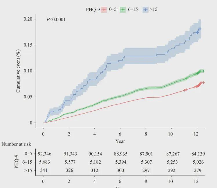 经过平均 11.6 年的随访,该研究发现 7,333 人死亡。患有抑郁症的参与者的累积死亡率高于非抑郁症参与者。