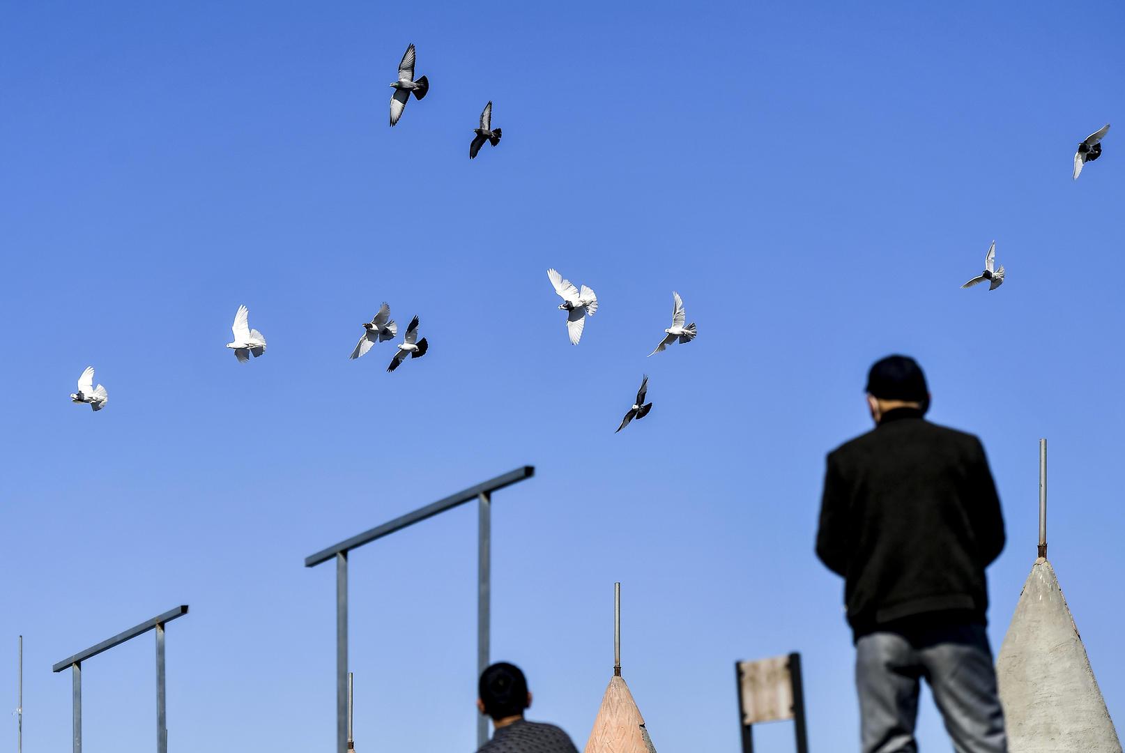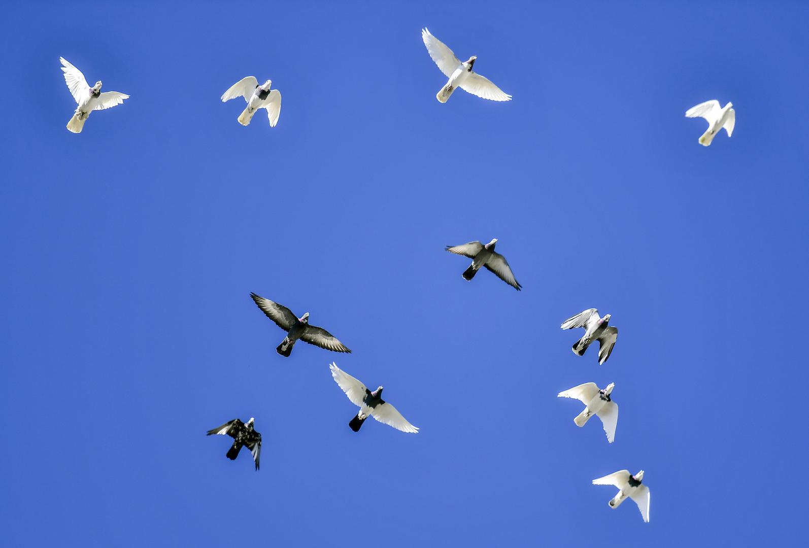 ▲图为飞翔的翻翻鸽 图据视觉中国